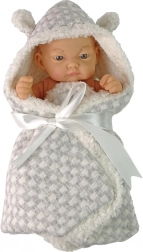 Ez a kedves baba meleg szürke pólyát fehér masnival visel, amelynek köszönhetően igazi kisbabára emlékeztet. Játék közben a gyerekek empátiát, felelősséget és finommotorikát tanulnak, miközben gondoskodnak a babáról. A 24 cm-es méret könnyű fogást és hordozhatóságot biztosít.