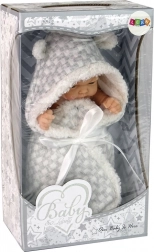 Aranyos baba – kisbaba puha szürke pólyában fehér masnival, amely minden kis anyukának örömet szerez. Fejleszti az empátiát, a felelősségérzetet és a gondoskodó készségeket. Minőségi és biztonságos anyagokból készült, mozgatható karokkal, mérete pedig ideális a kis gyerekkezekhez.