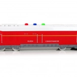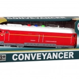 A piros-fehér vonat részletgazdag kidolgozással ideális kreatív játékhoz és ajándéknak is – az átlátszó ablakos csomagolás minden kis vasútrajongónak örömet szerez. Bekapcsolás után felgyullad a első lámpa, és megszólalnak a haladó vonat hangjai, fokozva a valósághű élményt.