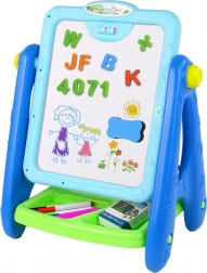 Bemutatjuk a rendkívüli, kék színű 2 az 1-ben oktatótáblát, amely a tanulás sokszínűségére és a szórakozásra helyezi a hangsúlyt! A praktikus tábla kétoldalas: az egyik oldalra színes filctollakkal lehet rajzolni vagy kártyákat rögzíteni, a másik egy mágneses fekete tábla, amelyre krétával írhat, akárcsak az iskolai táblára.