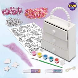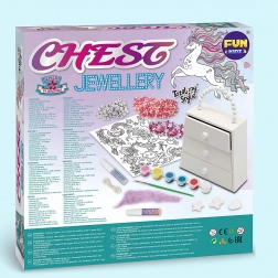 - A készlet tartalma: fa ékszerdoboz, ecset, 6 szín, zsinór, ragasztó és számos dekorációs elem.