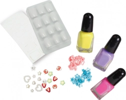 Alakítsd saját szépségszalont közvetlenül otthon! Ez a kreatív 3D körömkészlet mindent tartalmaz a gyors és szórakoztató díszítéshez: 3 színes lakk, 12 műköröm, 12 matrica, 2 féle flitter és 19 db 3D dísz. Az egyszerű útmutatónak köszönhetően a látványos otthoni manikűr még a kezdőknek is menni fog. Szuper 6 éves kortól gyerekeknek.