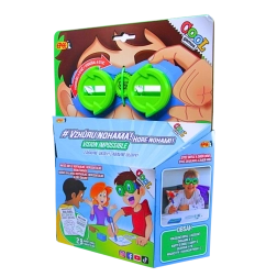 A csomag tartalma: szemüveg forgó kerettel, 29 kihíváskártya, törölhető filctoll és a játék útmutatója. A játék 8 éves kortól ajánlott.