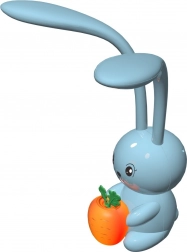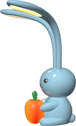 Ez a nyuszi alakú lámpa kifejezetten gyerekszobákba készült. Kék színe és narancssárga répája varázst kölcsönöz, és asztali, valamint éjjeli lámpaként is funkcionál, biztosítva a praktikus használatot. A nyuszi hosszú fülei fényforrásként működnek, lágy világítást biztosítva.