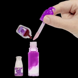 Fedezd fel a játékos Yummiland világát, és állítsd össze a saját, egyedi ajakfényedet! A Greta Grape babával lépésről lépésre kinyitod a tubust, hozzáadod a szőlőlimonádé illatot és a Bubble tea által inspirált színes pigmentet, majd jól felrázod. Az eredmény? Saját ajakfény csodás illattal és színnel, amit bárhová magaddal vihetsz.
