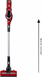 A Gyerek porszívó Bosch Unlimited piros színben, fekete elemekkel és szürke csővel készült, amely garantálja az autentikus megjelenést. Zöld LED kijelzővel van felszerelve, amely jelzi a bekapcsolást, és mozgatható padló kefés fejjel, forgó hengerrel a hatékonyabb szennyeződésgyűjtés érdekében.