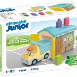 Ez a vidám építős szett ideális a kis építőknek. A formaválogató panellel ellátott garázs segít a gyerekeknek a formák és színek felismerésében, míg a masszív teherautó horoggal és mozgatható billenőplatóval támogatja a kreatív szerepjátékot. A gyermek megtanulja, melyik forma melyik nyílásba illik, és maga jön rá, milyen sorrendben esnek a darabok a platóra.