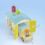 - Interaktív elemek: nyitható garázs, guruló autó, billenőplató.