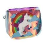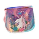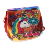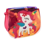 A táska szelíd egyszarvú és szivárvány mintákkal van díszítve, ami támogatja a gyermekek fantáziáját és játékosságát.