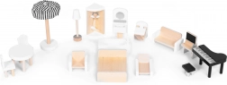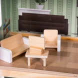 A készlet része egy 15 darabos, fából készült bútor kollekció is, amely tetszés szerint kivehető és korlátok nélkül átrendezhető.