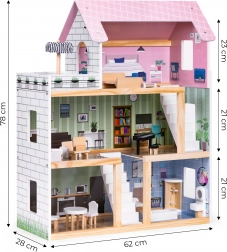 Elég egy pillanat játék, és a gyermek beleszeret. Az egész ház 3 önálló szintből áll, összesen 5 helyiséggel – minden a valódi otthont idézi.
