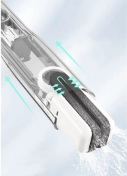 Lehetővé teszi a víz könnyű kinyomását egyetlen ujjal működő toló mechanizmussal, megkönnyítve ezzel a víz kinyomását.