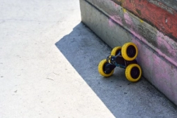 A nagy, tartós gumiknak köszönhetően a Flippy szinte bármilyen felületen képes mozogni, ami ideálissá teszi kaszkadőrmutatványokhoz.