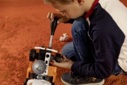 - Mozgatható űrhajós figura, amely kézi csavarhúzóval rendelkezik