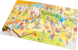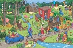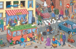 Városi jelenetek váratlan fordulatokkal, amelyek fejlesztik a fantáziát és a felnőtteket is megnevettetik. Ideális a részletek közös felfedezéséhez.