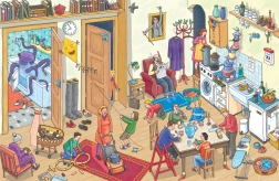A kádban lakó poliptól a szőnyegnyíró fűnyíróig – minden jelenet nevetést és kérdéseket vált ki. Remek a figyelem és a szókincs gyakorlására.