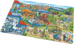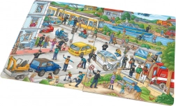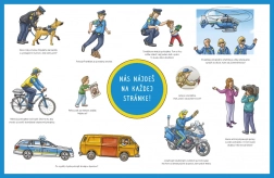 Ez a nagy könyv végigvezeti a gyerekeket egy mozgalmas napon a rendőrőrsön – az ékszertolvajok utáni nyomozástól a szemétlerakók ügyének megoldásán át egészen az elveszett kiskutya megkereséséig. A gazdag illusztrációk és a közérthető szövegek segítségével a kicsik olyan történeteket élvezhetnek, amelyek támogatják a megfigyelőképességet, a szókincset és a logikus gondolkodást.