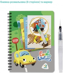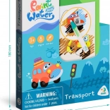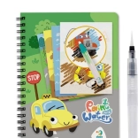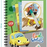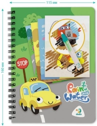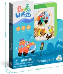 A közlekedési motívumokkal készült kreatív füzet végtelen szórakozást nyújt a gyerekeknek: töltse meg a vizes ecsetet, húzza végig az oldalon, és figyelje, ahogy élénk színek és részletek bukkannak elő az autókon, vonatokon vagy repülőkön. Száradás után az illusztrációk visszatérnek eredeti állapotukba, és a gyerekek újra festhetnek.