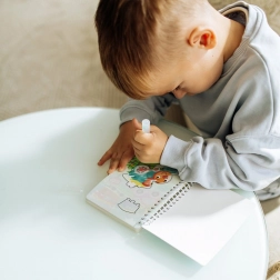 A spirálkötés megkönnyíti a lapozást, a kompakt 12 × 14 cm-es méret pedig tökéletes a hátizsákba. A tevékenység fejleszti a finommotorikát, a kéz–szem koordinációt és a kreativitást foltok kockázata nélkül.