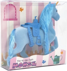 Fedezd fel a saját unikornisod gondozásának varázsát! Ez a műanyag unikornis puha, fleece jellegű felülettel rendelkezik, dús sörénnyel és farokkal, amelyeket újra és újra lehet fésülni és formázni. A nyereggel minden kalandra és fantáziautazásra készen áll.