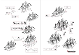 Az építés ragasztó nélkül zajlik – az elemek csapos reteszekkel kapcsolódnak, amelyeket kis fogóval kell meghajlítani. A kész GOLDEN HIND hajómodell stílusos dekorációként tündököl polcon, íróasztalon vagy vitrinben.