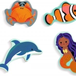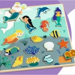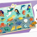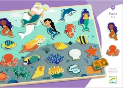 Fedezze fel a DJECO játékos fa kirakóját a varázslatos tengeri világ és sellők motívumával. Támogatja a finommotorika fejlesztését, a kéz–szem koordinációt és a logikus gondolkodást. Minden elemnek színes körvonala van a könnyebb elhelyezésért, a keretek pedig segítenek, hogy az elemek stabilan a helyükön maradjanak. A betételemek önálló figurákként is használhatók a játékhoz.