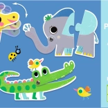 A DJECO Puzzle Duo Állatkák ideális játék a legkisebb gyerekek számára. A készlet 6 két darabból álló kirakót tartalmaz, amelyek segítenek a finommotorikus képességek és a logikai gondolkodás fejlesztésében. A nagy méretű puzzle darabok könnyen megfoghatóak, ami alkalmassá teszi őket a kis kezek számára.