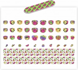DJECO Körömmatricák Gyümölcsökkel lehetővé teszik a gyerekeknek, hogy gyönyörű manikűrt készítsenek körömlakk nélkül. A készlet szórakoztató, könnyen használható és kíméletes a gyerekek körmeivel.