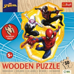 Fedezze fel a fa kirakót a SPIDER-MAN hőssel, amely szabálytalan formáival és ügyesen elrejtett elemeivel lelkesít. A készlet 50 darabot tartalmaz, amelyek közül 10 tematikus figuradarab extra szórakozást nyújt. Az elemek hátoldalán díszes minta található, és minőségi kivitelezéssel valamint intenzív színekkel tűnnek ki. Környezetbarát anyagokból készült, 5 éves kortól ideális.