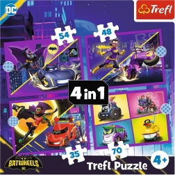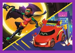 Gyerek kirakó 4 az 1-ben Batwheels motívummal, amely négy önálló kirakót kínál különböző elemszámmal fiatalabb és idősebb gyerekeknek. A legnagyobb elkészült kép mérete 285 × 205 mm, és örömet szerez minden DC-univerzumbeli járműrajongónak.
