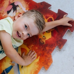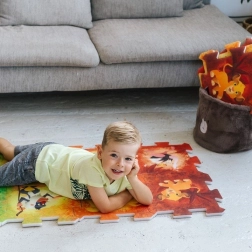 A Trefl Oroszlánkirály habszivacs puzzle ideális választás a biztonságos és kreatív játékhoz. A vastag polifoamhoz hasonló speciális anyag biztosítja a puhaságot, a tartósságot és az egyszerű tisztítást. A gyerekek nemcsak a Az oroszlánkirály kedvelt motívumainak kirakását élvezhetik, hanem kockák vagy alagutak építését is.