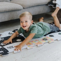 A Trefl habos kirakó a Treflíkek figuráival remek megoldás a biztonságos és kényelmes játékhoz. A speciális anyag, amely egy erős polifoamhoz vagy többrétegű mirelonhoz hasonló, kiváló ütéscsillapítást és kellemes lépésérzetet biztosít. A fekete-fehér illusztrációk nyugtató hatásúak és segítik a koncentrációt.