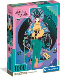 Élvezze a hosszú órákon át tartó szórakozást a minőségi, a Squid Game jelenség által ihletett CLEMENTONI kirakóval. Ez a 1000 darabos puzzle remek kihívást kínál, és kirakva egy lenyűgöző, 50 × 70 cm méretű képet alkot.