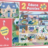 Élvezze a gyerekeknek és szülőknek szóló szórakozást az EDUCA márka dupla puzzle csomagjával. Minden puzzle 100 darabból áll, és kirakva megközelítőleg 40 × 28 cm méretű. Az „Outside, Inside ház” téma a gyerekeket a ház életébe vezeti kívülről és belülről, miközben támogatja a képzelőerőt, a koncentrációt és a finommotorikát.
