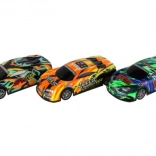 A modell tartós műanyagból készült, amely bírja a mindennapi gyerekhasználatot. A színek és matricák keveréke vonzó megjelenést ad az autónak – a feltűnő narancstól a vad, többszínű kombinációkig.