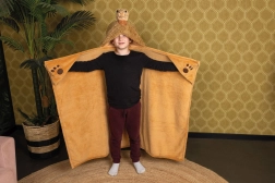 Élvezze az ötvözött szórakozást és kényelmet ezzel a meleg kapucnis takaróval. Állatstílusú dizájn, mely játékra hív és fejleszti a gyermekek képzeletét. Szuper puha polár anyagból készült, amely biztosítja a kényelmet és komfortot.?p>