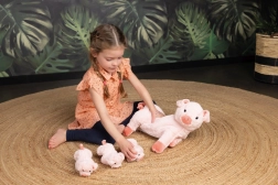 A Plüss Játék Malackák Anyukával készlet kínál nagyon puha és kellemes anyagot, ami ideális ölelésre és játékra. Az anyukán hasán praktikus cipzár található, amely könnyen hozzáférhetővé teszi a benn rejtett malackákat, ami nagyszerű az érzelmi és gondozási képességek fejlesztésére a gyerekeknél. Ez a funkció különösen praktikus útközben, mert a kismalacok biztonságosan elrejthetők.