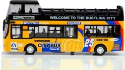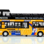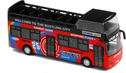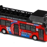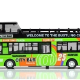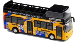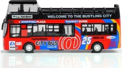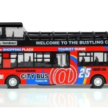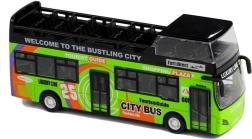 A realisztikus emeletes busz modell órákig tartó szórakozást nyújt és fejleszti a gyerekek képzeletét. A minőségi kidolgozás és a tartós anyag ellenáll az intenzív játék során. A busz klasszikus kialakítás ihlette és a 'visszahúzható' mechanizmus által mozgatható. Funkcionális fények és hangok gazdagítják a játékmenetet, míg a részletes belső tér, ülésekkel és kormánnyal, lehetővé teszi az autentikus játékélményt.