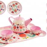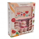 Ez a gyönyörű teás készlet színes, fehér és rózsaszín virágos mintával, ami tökéletes kiegészítője a gyerekek délutáni teaparti játékainak. Gyermeke meghívhatja barátait, és élvezhetik a közösen eltöltött idő szépségét.
