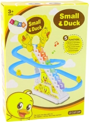 Ebben a játékban a kis kacsák lépcsőkön kúsznak fel, majd röviddel ezután lecsúsznak a csúszdán. Ez nemcsak szórakoztató, hanem a gyermek koordinációját és érzékszerveit is fejleszti.