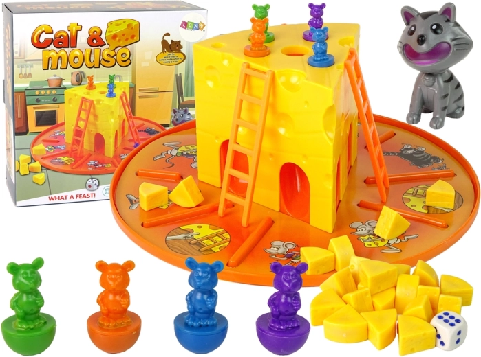 Az Ügyességi játék Macska és Egér egy szórakoztató társasjáték, amelyben az a feladat, hogy megszerezzük a sajt darabokat. De légy óvatos! Max, a hatalmas macska leselkedik a sarokban. Ha nem vagy elég óvatos, és a macska észrevesz téged, elveszíted a sajtkincset. A játék győztese az, aki először szerez meg 5 sajtdarabot.