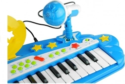 Szórakoztató gyerek keyboard 37 billentyűvel, levehető mikrofonnal és MP3‑bemenettel, amely nagyszerű zenei élményt nyújt. Kínál felvételt, demódalokat, zenei stílusok és hangszerek választását, fényhatásokat, valamint a tempó és a hangerő szabályozását. Ideális kis zenészeknek 3 éves kortól.