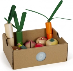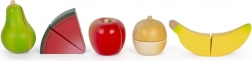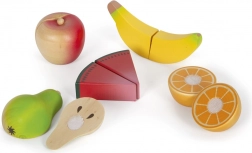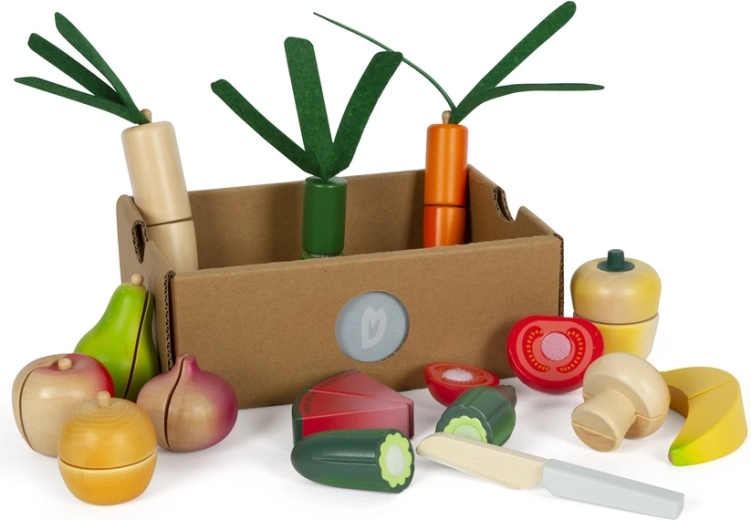 A Friss gyümölcs- és zöldséges szeletkészlet szórakozást és egyúttal tanulást biztosít a gyerekeknek. A fa késsel a gyerekek biztonságosan "vághatják" fel az egyes darabokat, ami fejleszti a finommotorikát és a kéz-szem koordinációt.