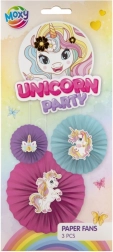 Varázslatos hangulatot varázsolhatsz bármelyik ünnepségre ezekkel az unikornis mintás papír legyezőkkel. A csomagban 3 színes darab található (rózsaszín, kék, lila), amelyek ideálisak gyerek születésnapok, tematikus bulik és fotósarok dekorálásához.