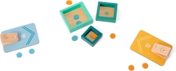 Szórakoztató és izgalmas asztali játék 2 játékosnak, 6 éves kortól, ahol a pontos célzás, a gyors reakció és a taktika dönt. Az indítórámpával zsetonokat lősz ki három, különböző méretű célra – minél kisebb a cél, annál több pont. Néhány zseton kétszeres értékű, így okosan kombinálva növelheted a pontszámot. Kiváló a finommotorika és a kéz–szem koordináció fejlesztésére.