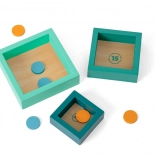 - 3 cél (9×9 cm, 7×7 cm, 5×5 cm), 2 indítószerkezet (kb. 13 × 9 × 4 cm), 10 zseton