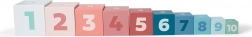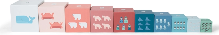 A tíz darab, tartós kartonból készült, színes rakásolható kocka segít a gyerekeknek játékosan megtanulni a számokat, felismerni az állatokat, valamint fejleszti a finom- és nagymotorikát. A különböző méretű kockákból piramis építhető, vagy vízszintesen sorba rendezhetők a szórakoztató tanulásért és a logikus gondolkodás fejlesztéséért.