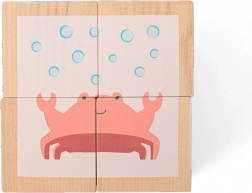 Ez a fa kirakó örömteli felfedezésre hív – csak megfelelően kell forgatni a kockákat, és megtalálni az egyes állatok minden részét. Az egyszerű elv motivál az ismételt játékra, amely természetes módon fejleszti a koncentrációt, a színek és formák felismerését, valamint a türelmet.