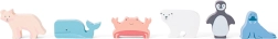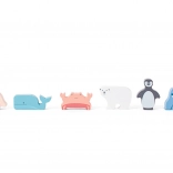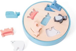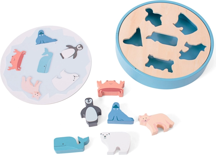Ez a minőségi fa beillesztős játék állatfigurákkal (fóka, jegesmedve, rák, pingvin, róka és kardszárnyú delfin) ideális első puzzle a kis felfedezőknek. A darabok masszívak, jól illenek a gyerekek kezébe, és a határozott körvonalaknak és illusztrációknak köszönhetően könnyen a helyükre illeszthetők.
