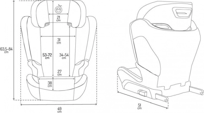 - Jól látható jelző a helyes rögzítés megerősítésére az ISOFIX talp és az autósülés között, amely csökkenti a hibás beszerelés kockázatát